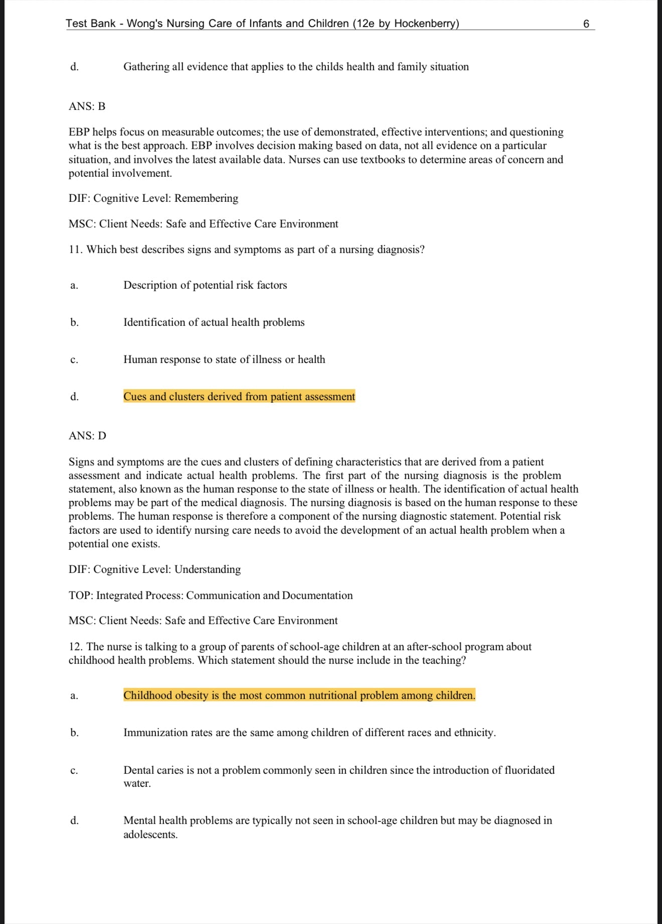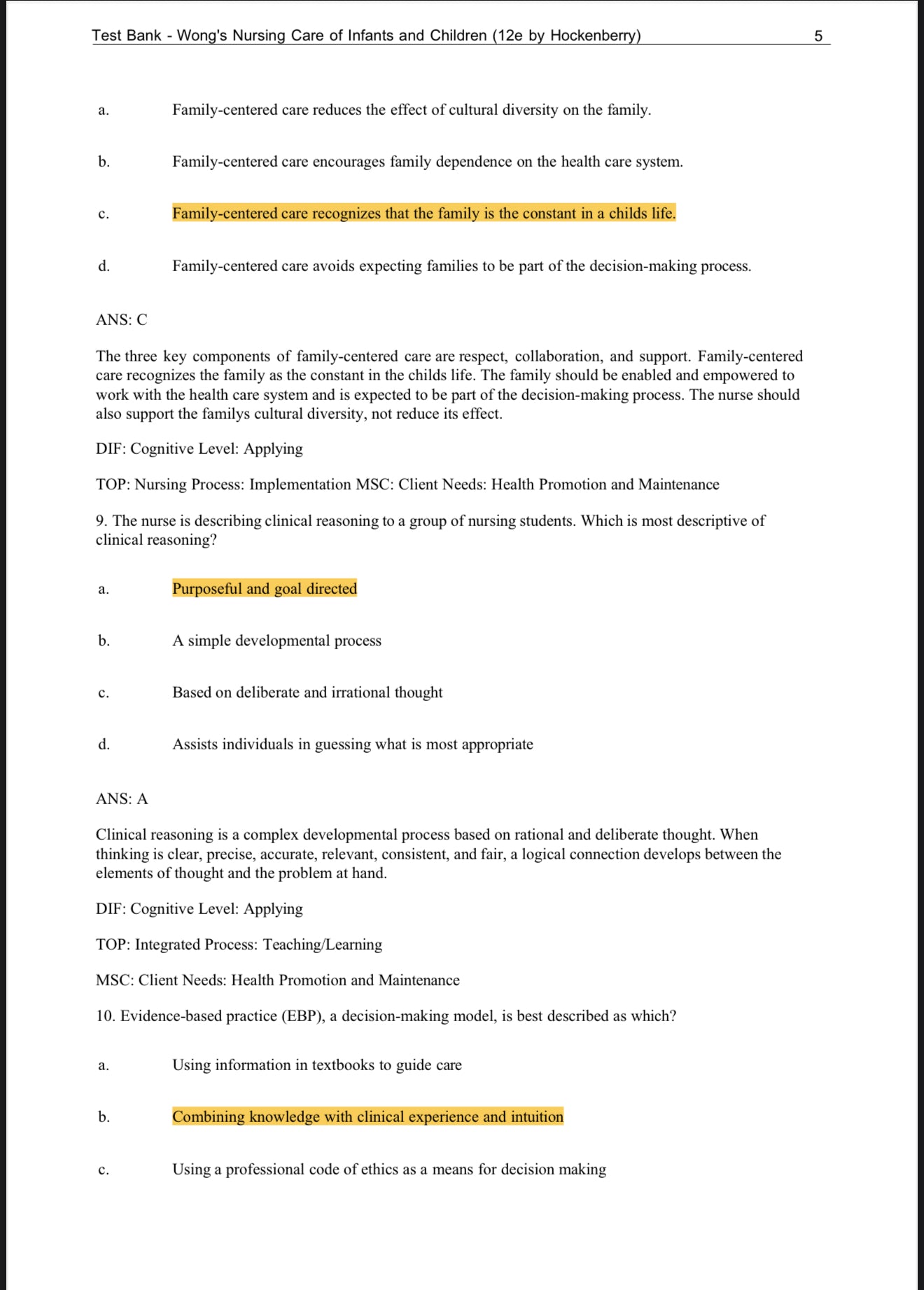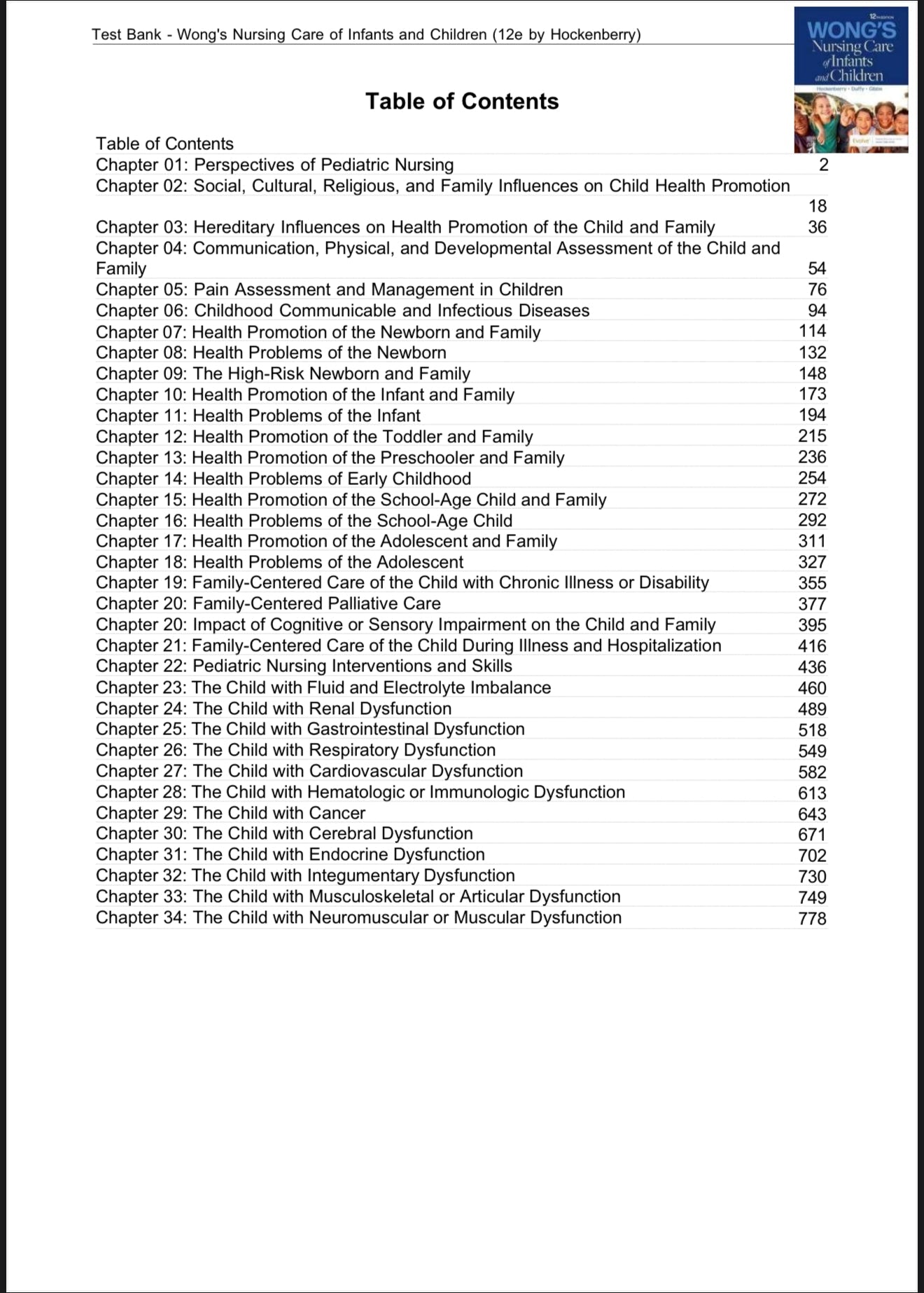 This test bank complements Wong’s Nursing Care of Infants and Children, 12th Edition by Marilyn J. Hockenberry, Elizabeth A. Duffy, and Karen Gibbs.