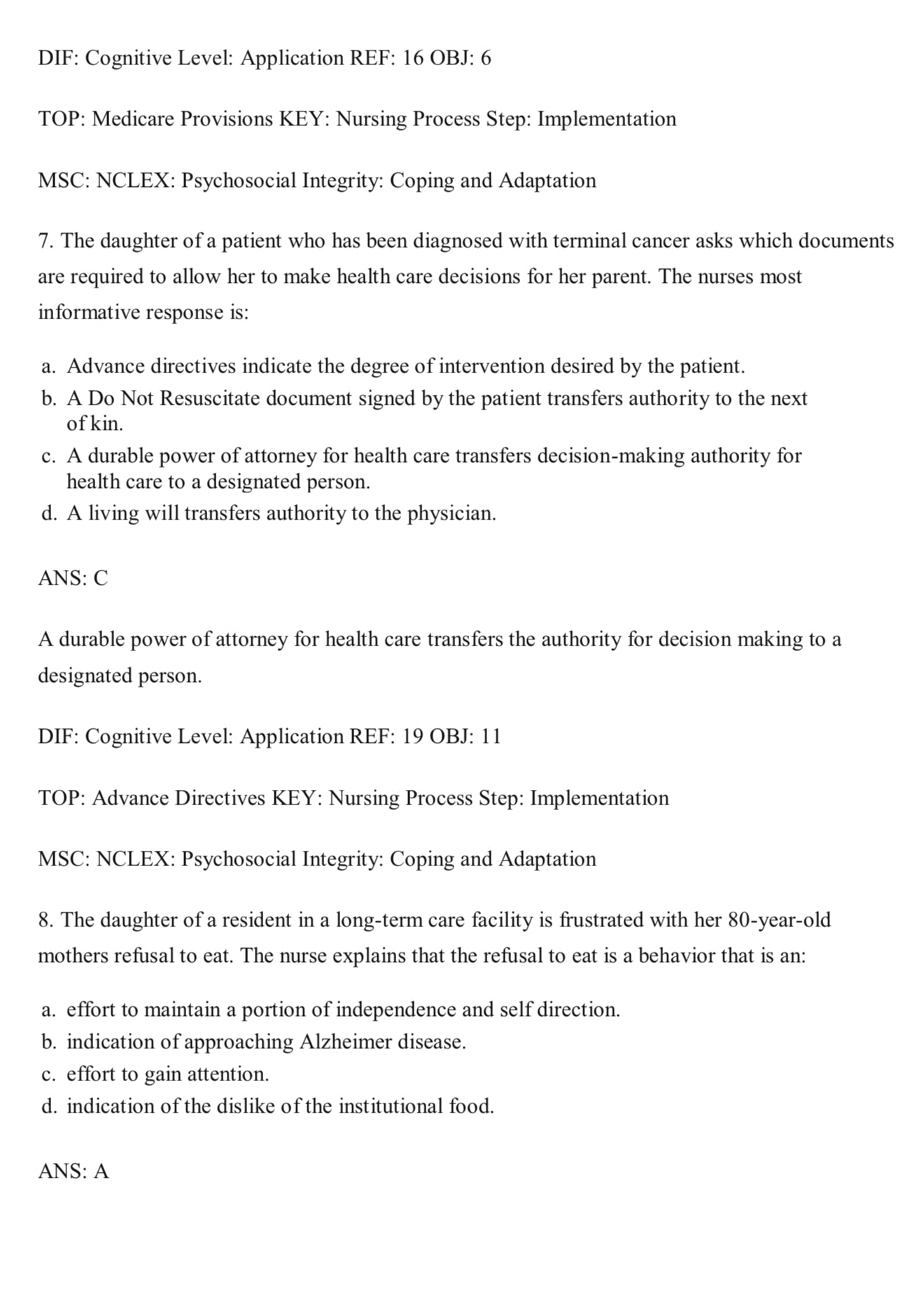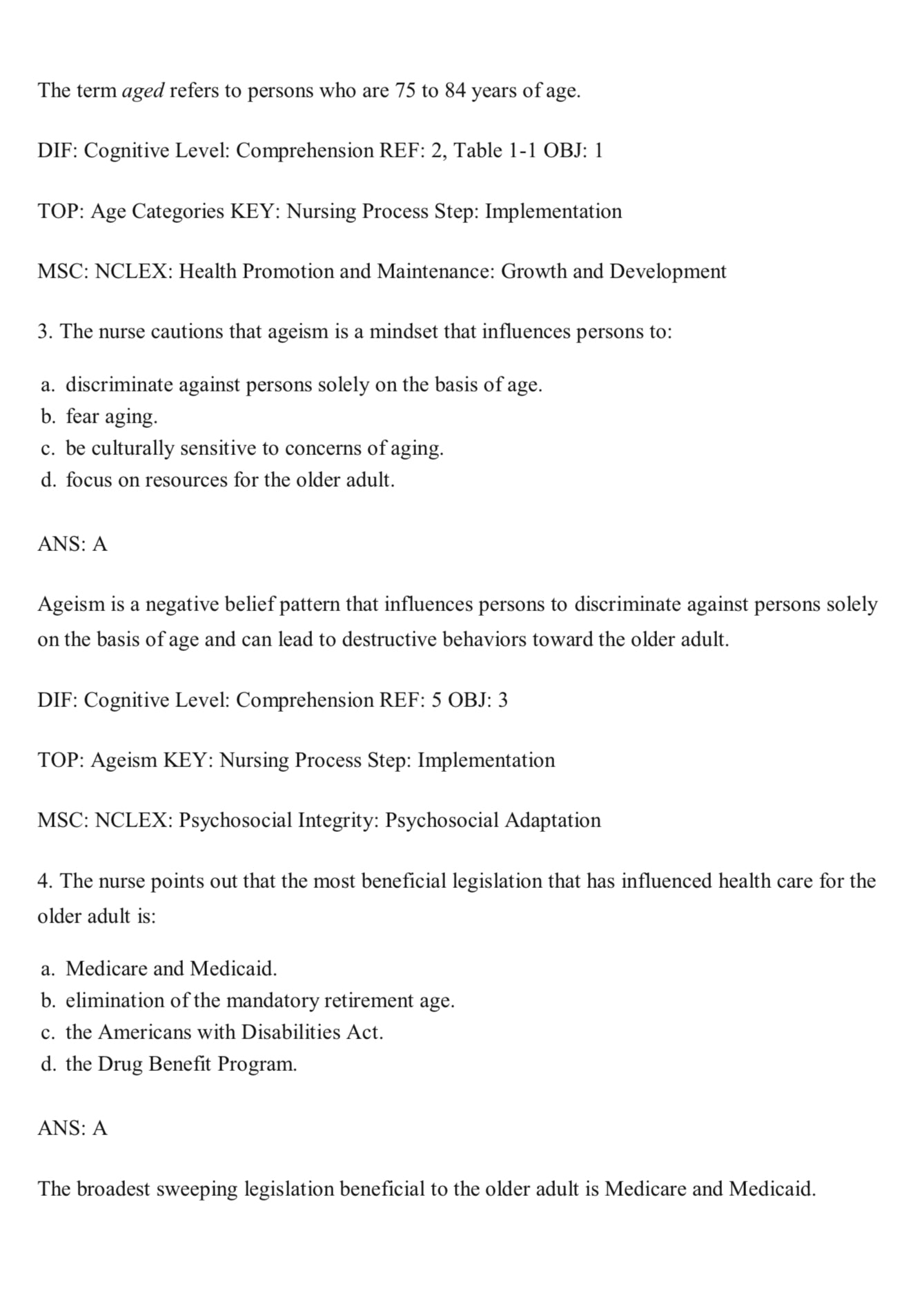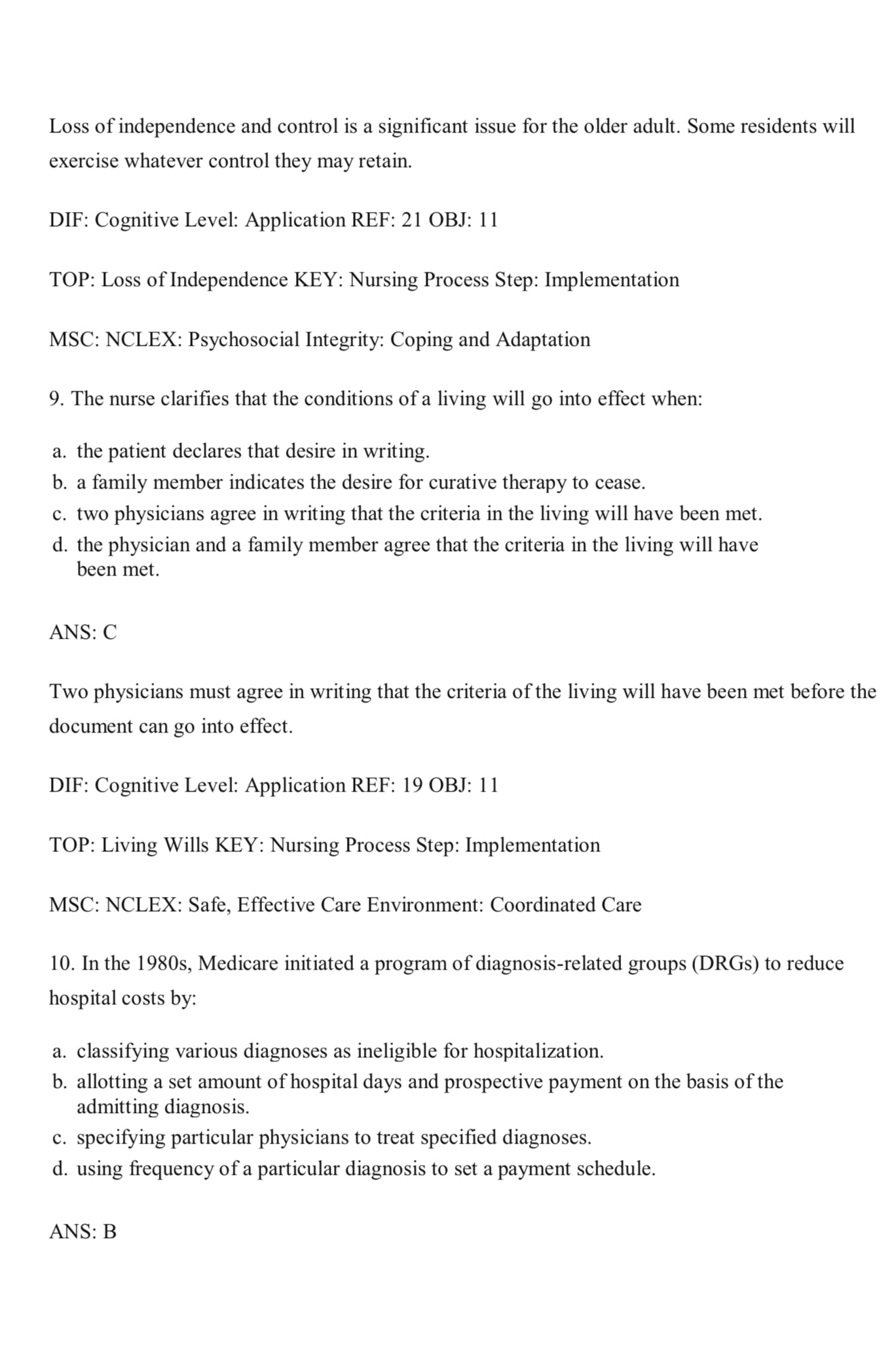 TEST BANK Gerontological Nursing 10th Edition Eliopoulos